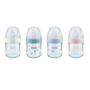 NUK NatureSense-ի նորարարական շիշ մեծ լայն պարանոցով և նոր դիզայնովծայրին շատ փափուկ հատվածով ծծակ, որի վրա կաթի բնական հոսքն ապահովող մի քանի անցք կա:Ընդլայնված հակակոլիկ փականը թույլ չի տալիս օդը կուլ տալ:Բարձրորակ ապակե շիշ: