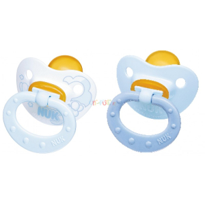 NUK լատեքսից BABY BLUE ծծակը թեք է, ունի դասական օղակ: