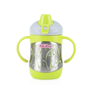Termopoilnik silicone spout 270 ml Nuby for travel and short trips. Drinking bowl made of transparent high-impact polypropylene. Microwave oven is only suitable for heating liquids. During heating of liquids in the bottle in a microwave oven and the nipple cap bottles must always be removed. Removable handle to help him master the skill of self-feeding.