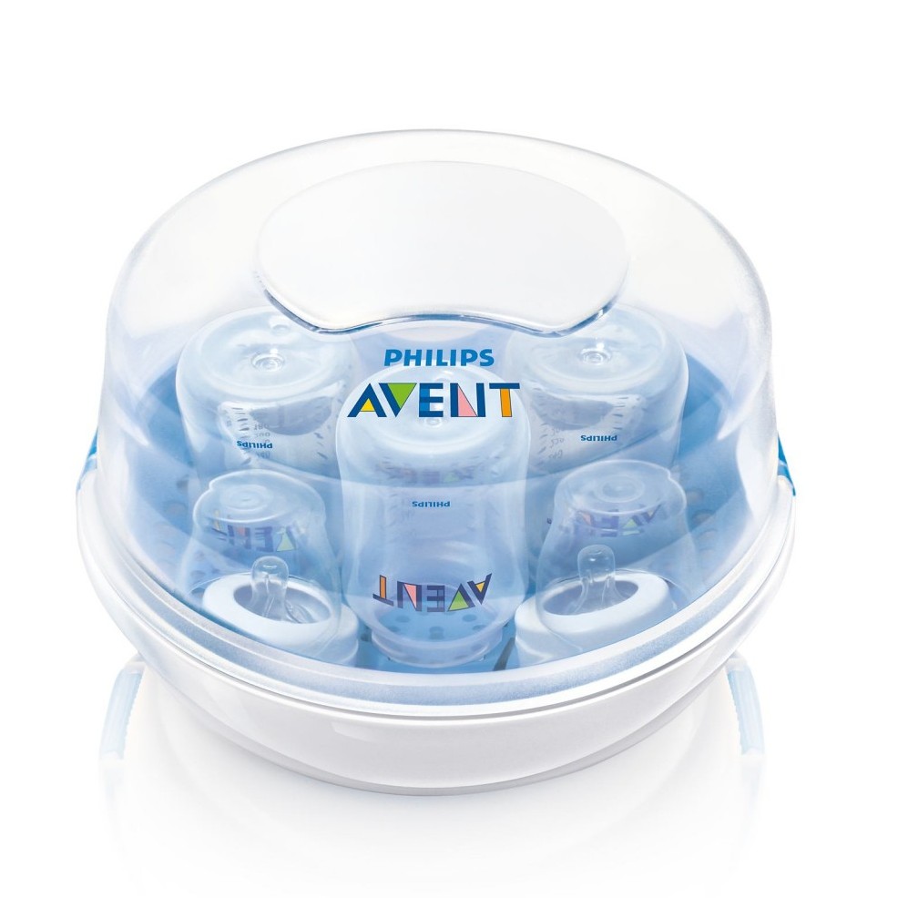 The Philips AVENT Microwave Steam Steriliser SCF281/02 has a lightweight and compact design, which makes it ideal for use in and out of the home. Contents remain sterile for up to 24 hours if the lid is unopened.